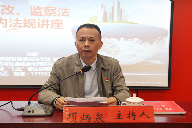 10月19日下午,院黨委召開中心組(擴大)學習會,省委黨校法學部教授杜敏應邀作了《憲法》、《監(jiān)察法》和黨內法規(guī)專題報告。黨委書記、董事長項炳泉主持會議并講話。院領導班子成員、中層以上管理人員、各黨支部班子成員以及部分黨員共計100余人聆聽報告。