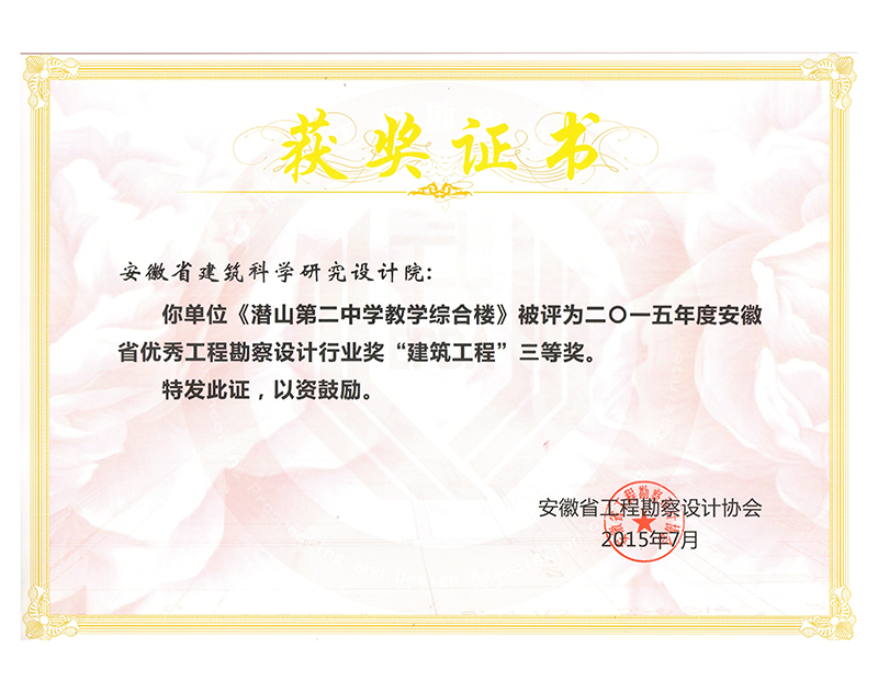 2015年度安徽省優(yōu)秀工程勘察設(shè)計(jì)三等獎(jiǎng)(建筑工程)