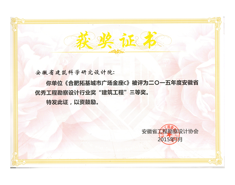 2015年度安徽省優(yōu)秀工程勘察設(shè)計三等獎(建筑工程)