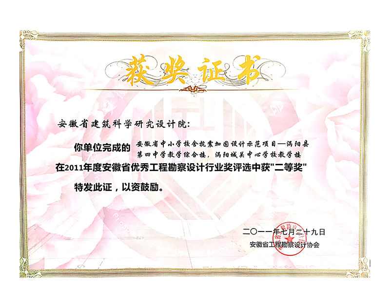 2011年度安徽省優(yōu)秀工程勘察設(shè)計二等獎(建筑結(jié)構(gòu))