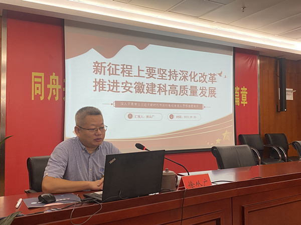 徐從廣結(jié)合個人近期近期學(xué)習(xí)心得體會,以《新征程上要堅(jiān)持深化改革,推進(jìn)安徽建科高質(zhì)量發(fā)展》為題,圍繞為什么要堅(jiān)持深化改革、改革開放取得的巨大成就是全面深化改革的基礎(chǔ)、黨的十八屆三中全會吹響全面深化改革的號角、堅(jiān)持以全面深化改革推進(jìn)中國式現(xiàn)代化、堅(jiān)持改革創(chuàng)新,推進(jìn)安徽建科高質(zhì)量發(fā)展等方面內(nèi)容作了專題黨課報(bào)告。